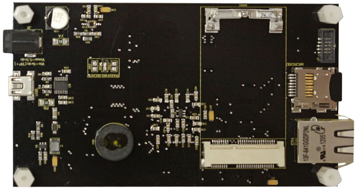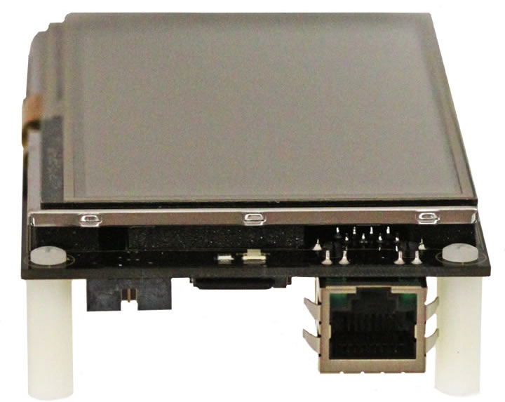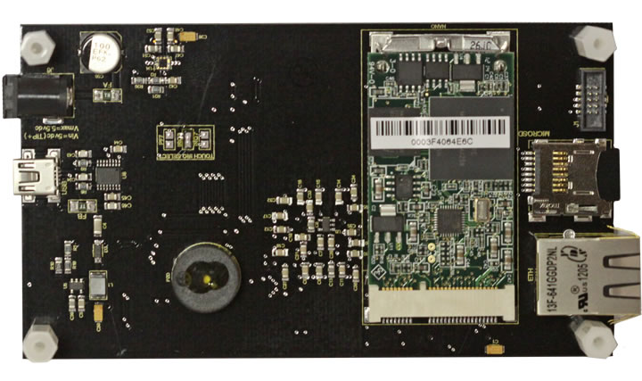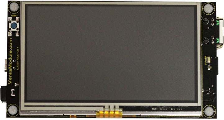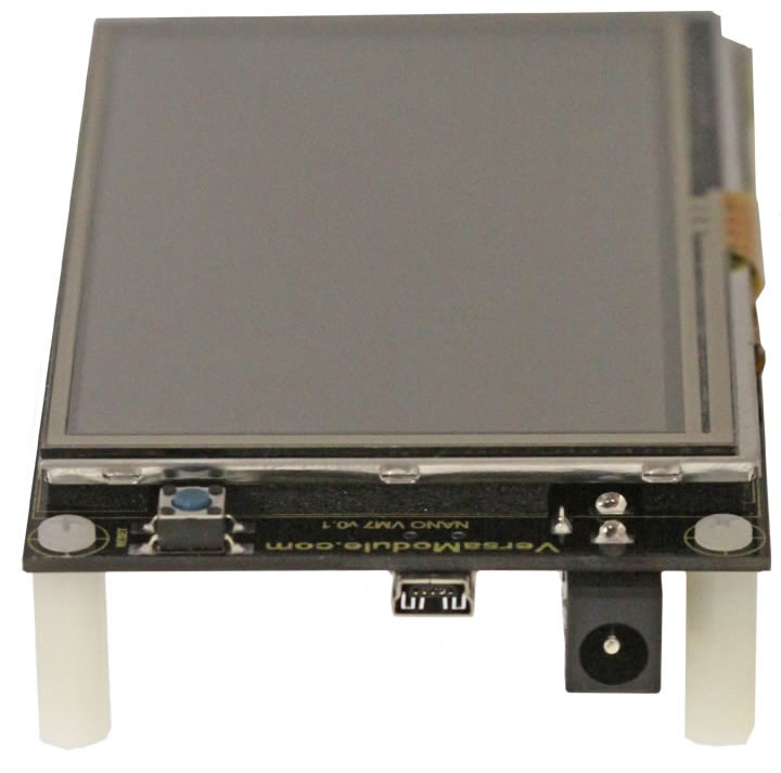 The VM7 is one of the fastest ways to get your product to market. This production ready board can be placed into your own custom enclosure thereby giving you a complete product. If you need additional sensors or to communicate with other devices, there is a 10 pin keyed "socket" header on the back of the unit that provides SPI, I2C, #RESET, IRQ & 3.3v power and ground signals. As this is a touch screen, there is no need for mechanical buttons. You can easily create your own soft buttons, and place then anywhere on the screen. By using the SX8655 touch screen IC, you are not bound by using a touch pen. You can now also use your fingers instead. You can even use the drag and drop features. Source code for demo is provided with purchase.