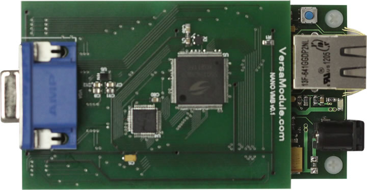 The VMB module uses the same design as our VM8 module, but plugs onto our VMO Mainboard giving you a complete VGA solution. Together they can be placed into an enclosure of your choice for a complete VGA networked product. There are 3 ten pin keyed socket on the board giving you access to some of the Nano I/O's should you need to interface to sensors. Source code for demo is provided with purchase.